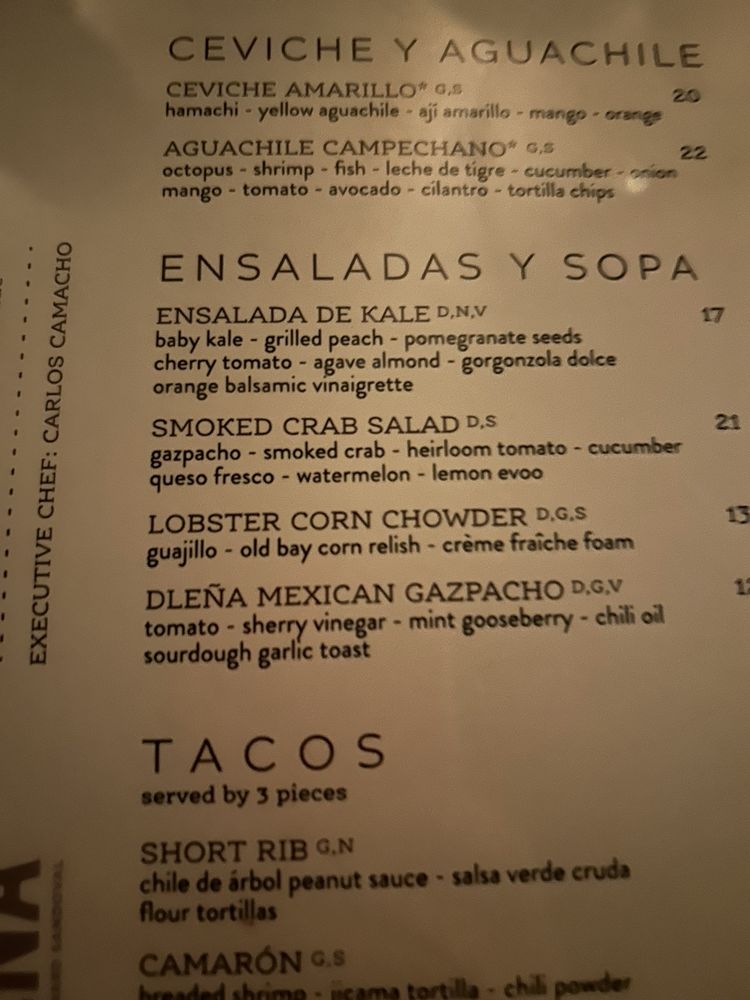 mango, cucumber, sweet potato, charred leche de tigre, avocado, cilantro, oaxacan tlayuda tostada (contains gluten)